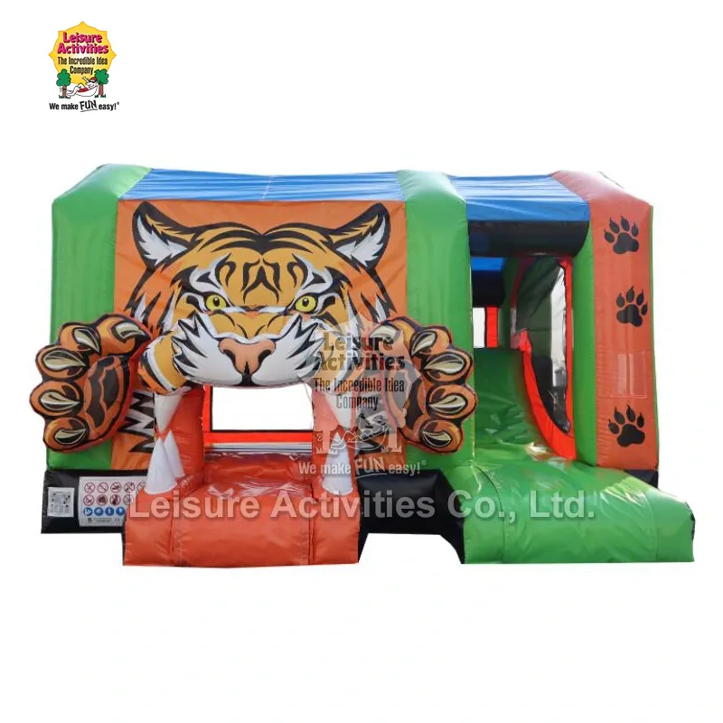 Leisure Activities® on professionaalne täispuhutavate toodete tootja ja tarnija Hiinas. Standardsed täispuhutavad mitme mänguga Tiger Bouncy Castles on tiigriteemaline täispuhutav loss, mis ühendab endas hüppamise, ronimise ja libisemise funktsioonid. Selle põhivärvideks on laimiroheline ja oranž ning sissepääsu juures on 3D-tiigri kaunistus. Selle saab kiiresti seadistada vaid 10 minutiga.