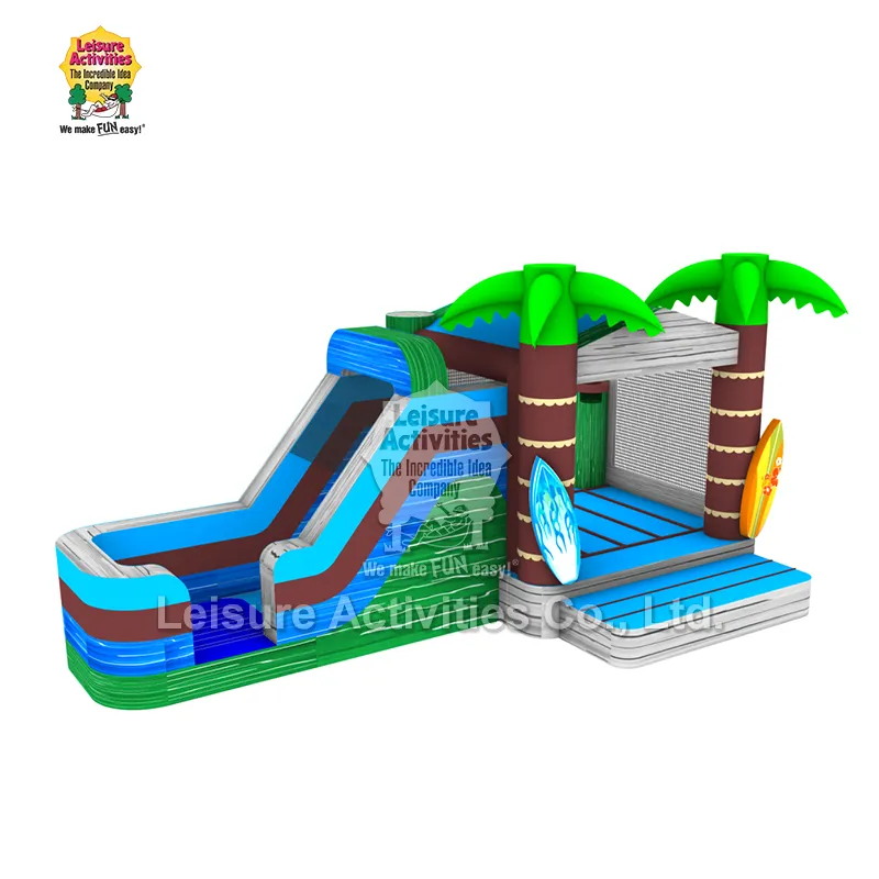 Leisure Activities® is a professional manufacturer and supplier of inflatable equipment. The Super Inflatable Multiplay Bouncy Castles Tropical, with a tropical island theme, integrates bouncing, climbing, and slides. It is suitable for various commercial and event scenarios both indoors and outdoors. Made of high-quality international standards materials, it combines fun, safety, and convenience. It is favored by global buyers as a high-quality inflatable recreational equipment.